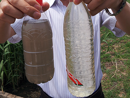 溪流氧化溝為磚混砌筑的水溝形式,上面蓋有帶孔洞的蓋板,使得空氣能夠進入氧化溝內,氧化溝底布置有彈性填料,好氧微生物在上面附著生長,形成一定的生物膜,從折流式厭氧反應器流出的污水在密布彈性填料的溝內流淌過濾24h。在好氧微生物的作用下污水在氧化溝內逐級分解過濾,水中的污染物逐漸減少,水體的透明度不斷提高,各項污染指標都得到進一步的降低,最終使得出水指標達到二級排放標準。氧化溝每隔一段距離設置一個集污井,用于收集氧化溝內的沉淀物,集污井上設置有窨井蓋,防止雜物進入。一段時間后只需要清除一下集污井中的沉淀物,操作管理十分簡便。