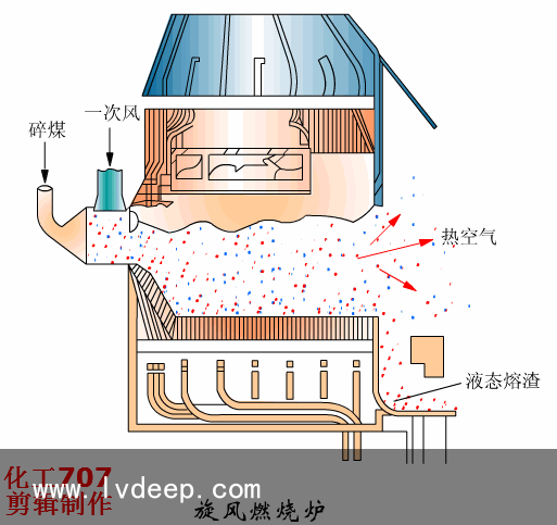 旋風燃燒爐 ?旋風鍋爐利用高速旋轉的空氣流使煤粒高速度旋轉并強烈燃燒的圓筒形燃燒室(爐膛)旋風爐可用于鍋爐等設備氣流的高速旋轉作用將煤粒拋向筒壁,煤粒在筒壁和筒壁附近的空間內燃燒,形成一個溫度很高的區域,使灰渣溶化而粘在筒壁上。