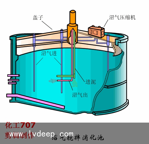 沼氣攪拌消化池?消化池通常指廢水處置懲罰中所產生污泥的厭氧生物處置懲罰。即污泥中的有機物在無氧條件下,被細菌降解為以甲烷為主的污泥氣和穩定的污泥(稱消化污泥)。