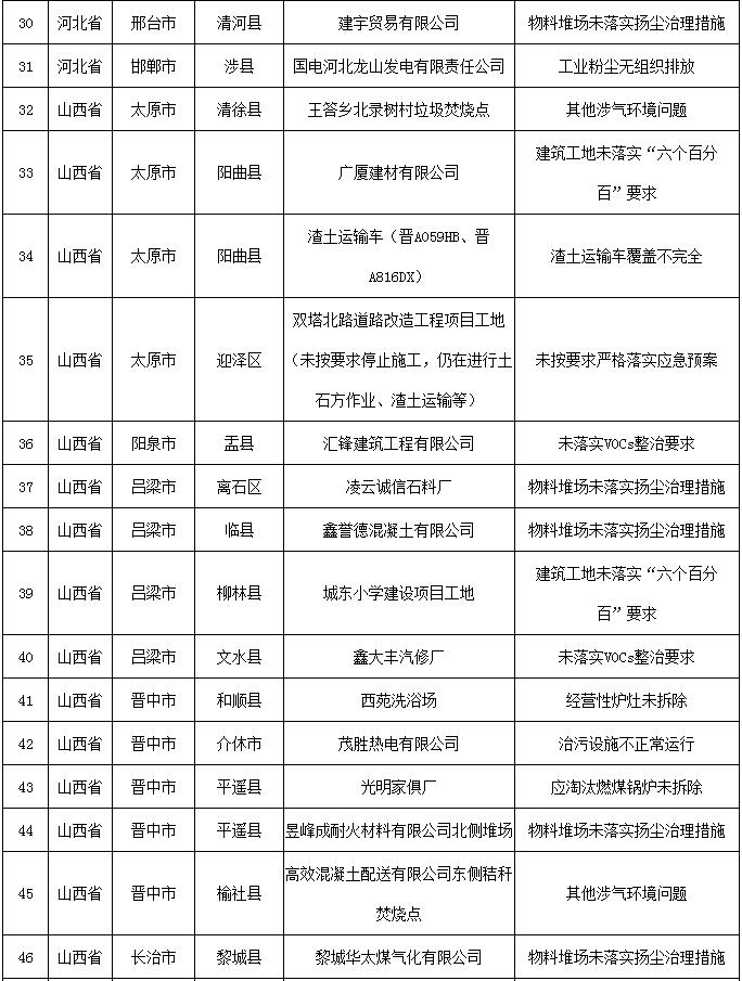 其中,河北省廊坊市安次區(qū)1家;山西省太原市陽(yáng)曲縣2家,呂梁市柳林縣1家,運(yùn)城市稷山縣1家;河南省洛陽(yáng)市澗西區(qū)1家;陜西省西安市周至縣1家。
