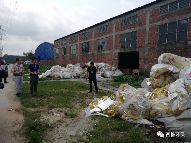 2019年4月6日,南海區(qū)西樵鎮(zhèn)環(huán)保辦工作人員在進(jìn)行日常巡查中發(fā)現(xiàn),在西岸生活污水處理廠附近空地有兩堆以保溫材料廢料為主的工業(yè)固體廢物,在翻查中發(fā)現(xiàn),該廢物中有兩張寫著“鶴山**”的標(biāo)簽。