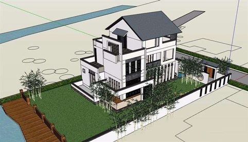 中式別墅庭院SU模型圖