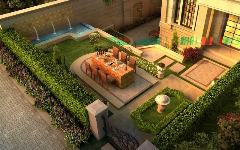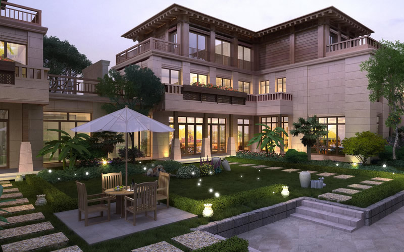 針對別墅庭的特點,在其綠化形式上應采用點、線、面相結合的復合綠化模式,最大限度地發揮綠地系統的實用功能。如增加立體綠化、垂直綠化和屋頂綠化,在提升別墅庭院舒適性的同時,有效實現隔熱、蓄水、凈化空氣等生態功能;采用喬木下面種植灌木、灌木下面種植草花、地被等的復層綠化形式;我們以人為本,充分展示和實現業主的生活品味。